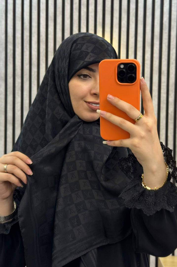 روسری ابریشم ژاکارد طرح فندی رنگ مشکی