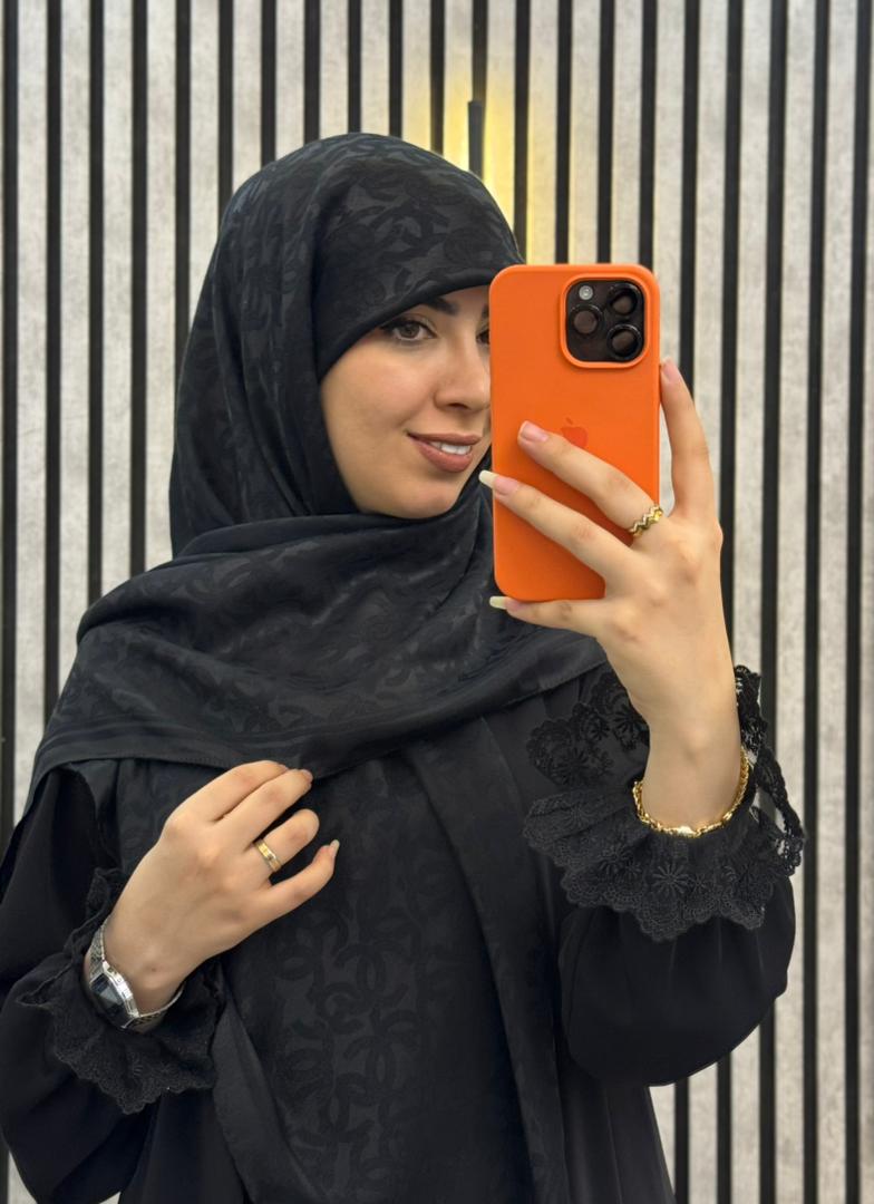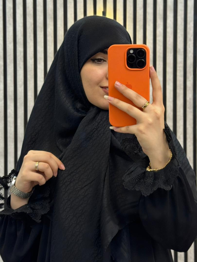 روسری ژاکارد نخ رنگ مشکی قواره 120 طرح09