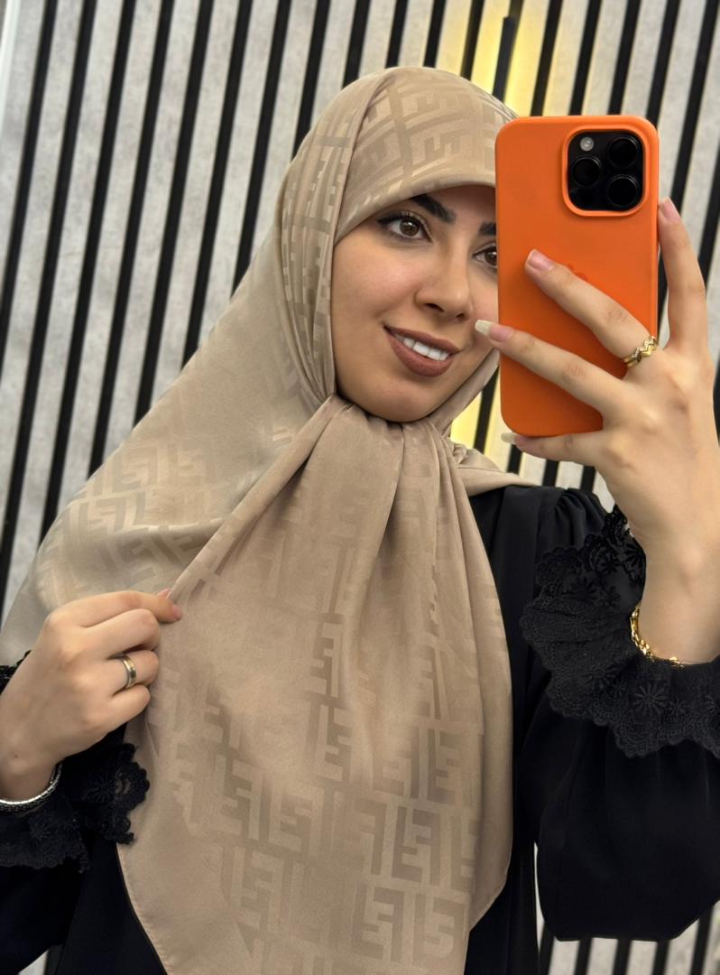 روسری ابریشم ژاکارد طرح فندی رنگ موکا