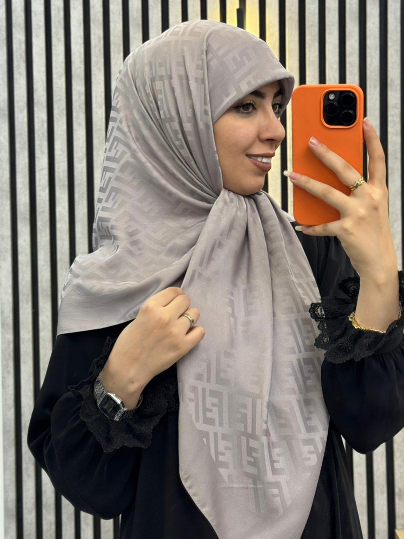 روسری ابریشم ژاکارد طرح فندی رنگ طوسی
