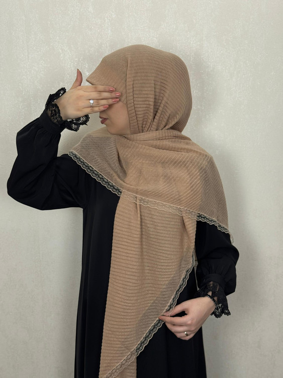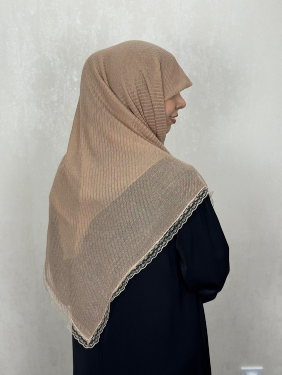 روسری پیلیسه دور دانتل رنگ موکا