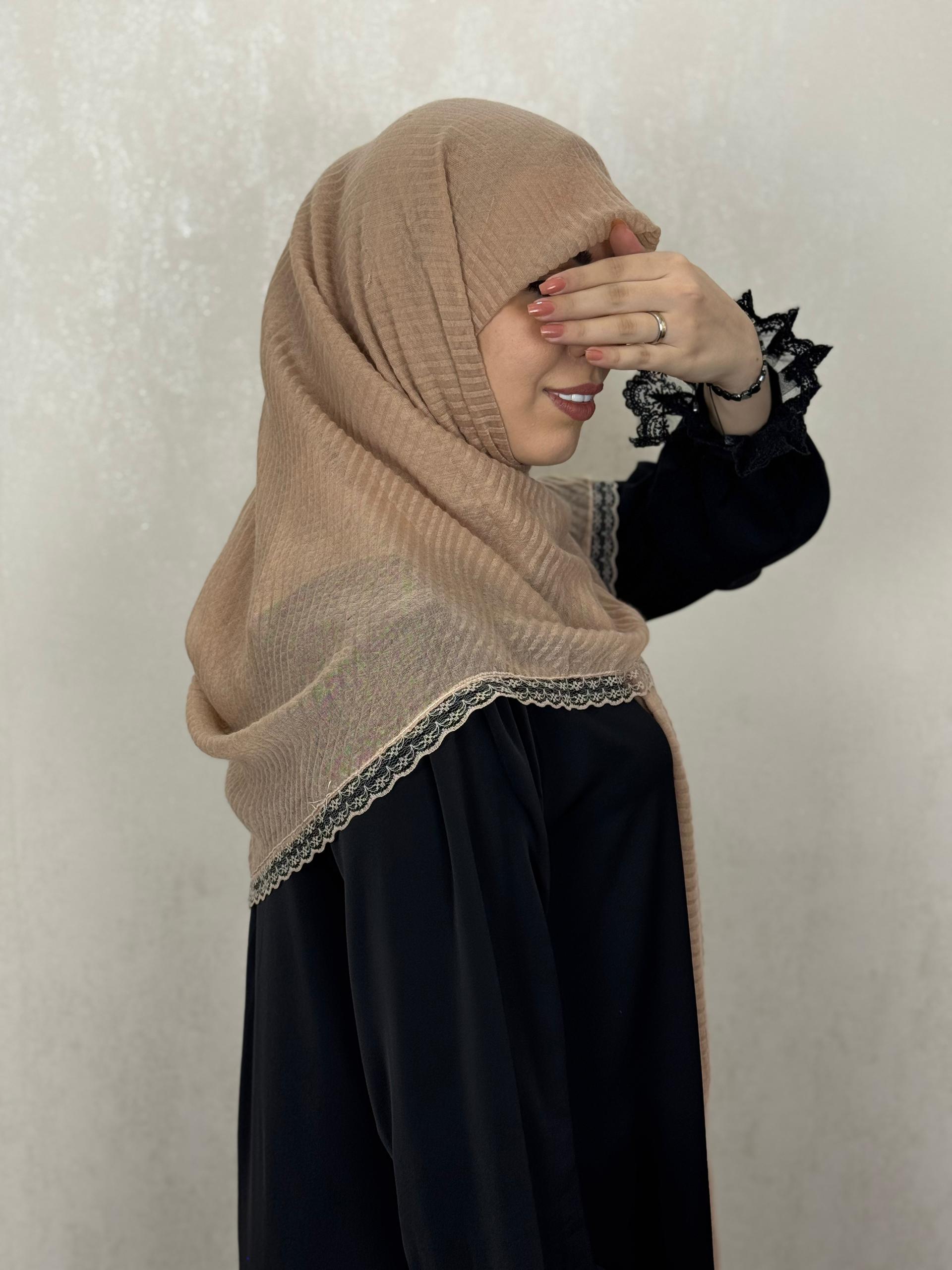 روسری پیلیسه دور دانتل رنگ موکا