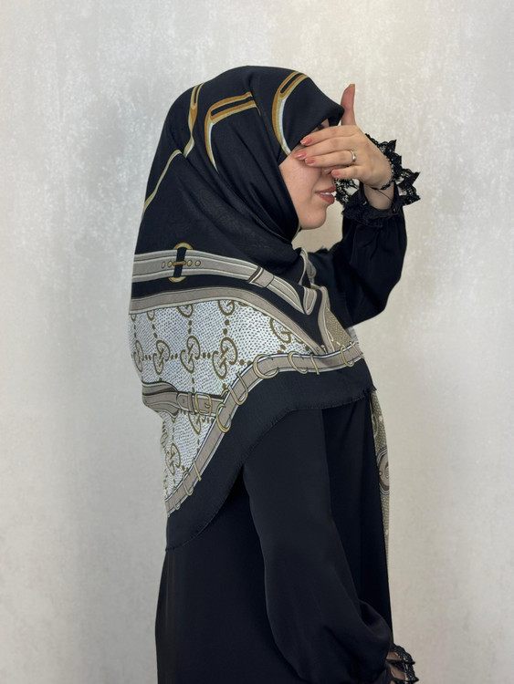 روسری نخی یونیک وارداتی رنگ مشکی طرح 001