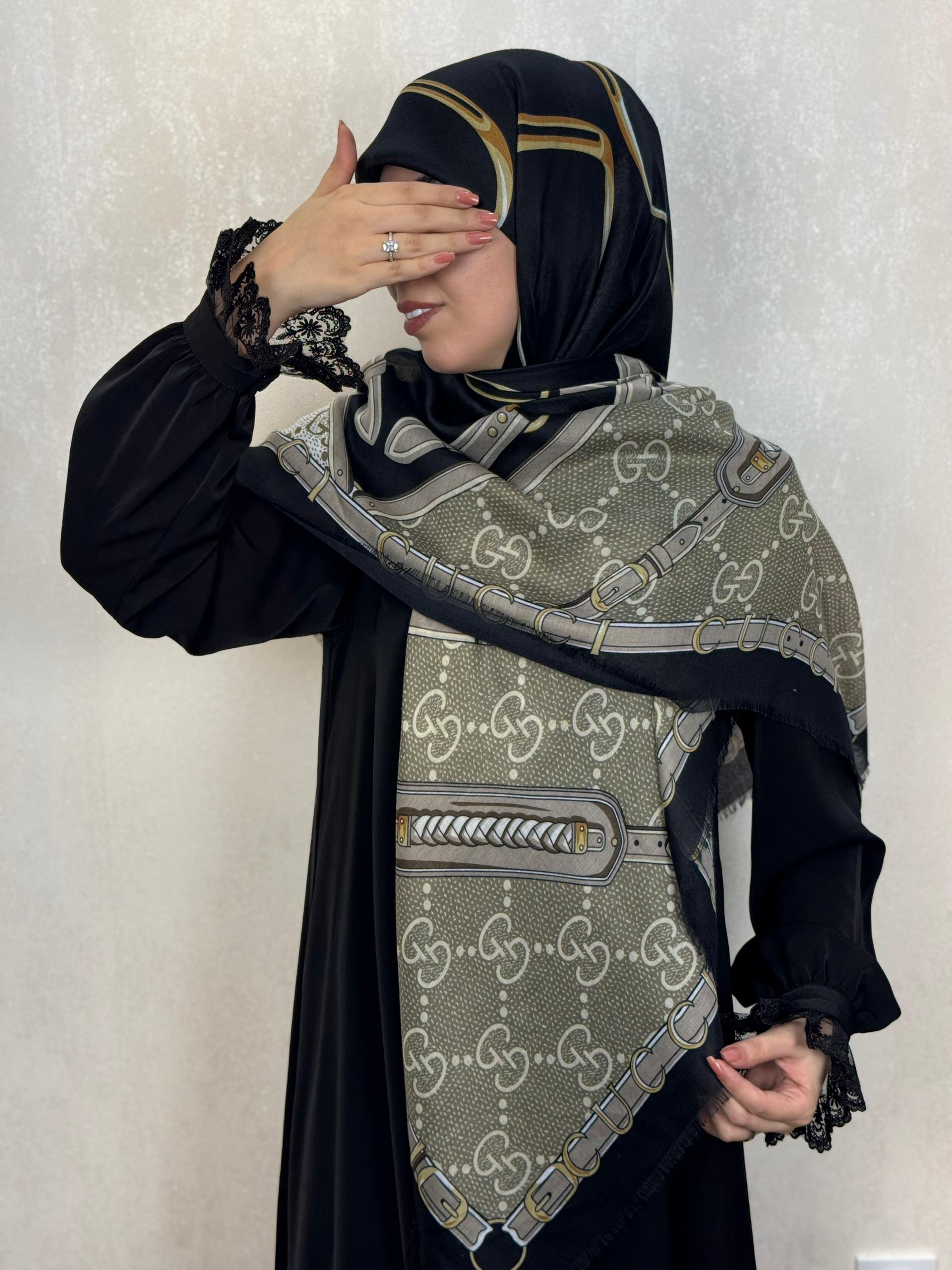 روسری نخی یونیک وارداتی رنگ مشکی طرح 001