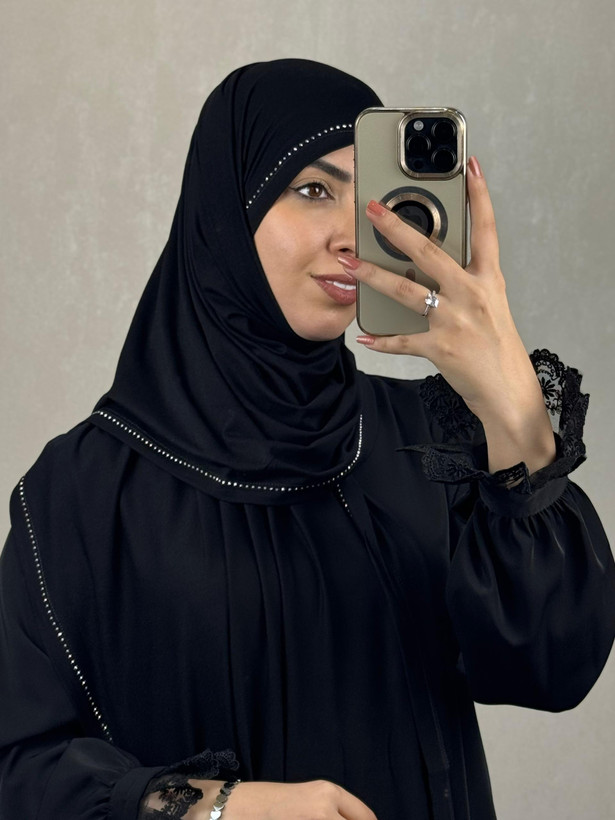 شال کشی نگین دار جنس ویسکوز درجه یک رنگ مشکی با نگین های نقره ای