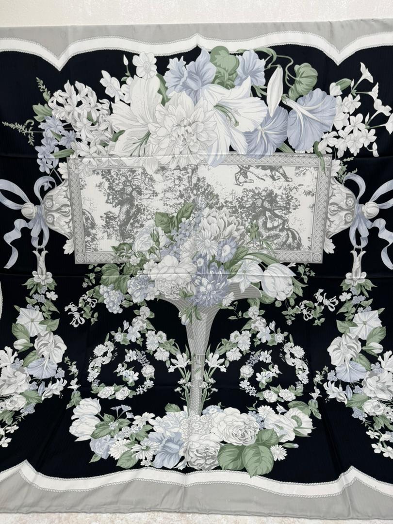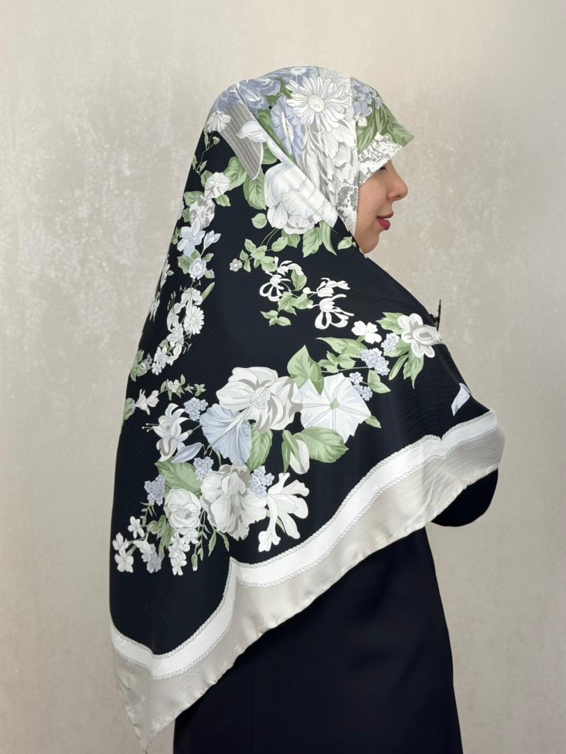 روسری ابریشم ژاکارد دوردست دوز وارداتی رنگ مشکی کد 001