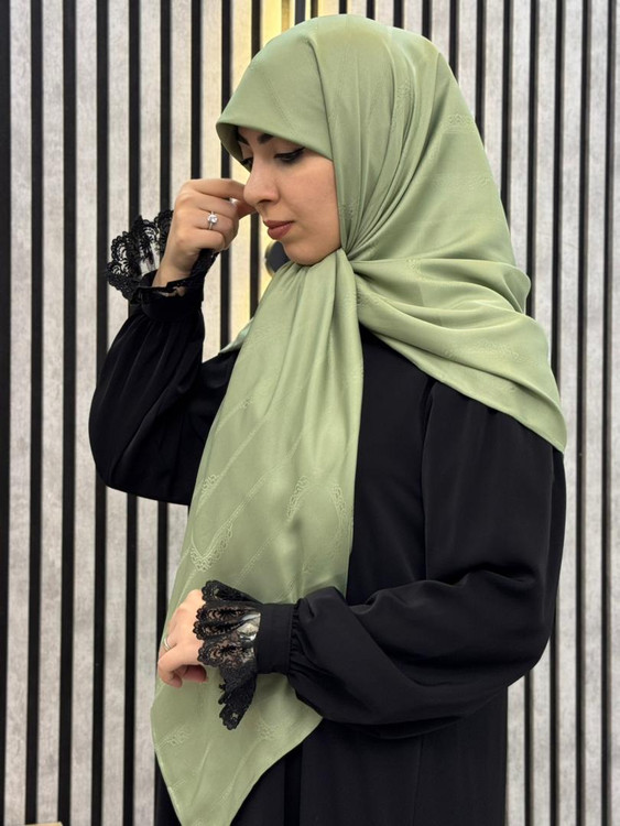 روسری ابریشم ژاکارد دوردست دوز وارداتی رنگ سبز