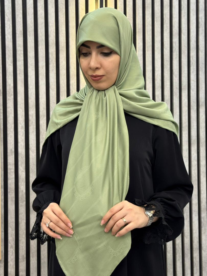 روسری ابریشم ژاکارد دوردست دوز وارداتی رنگ سبز