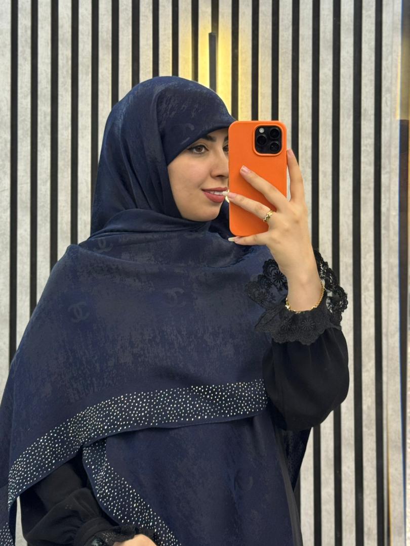 روسری وال اسلپ پتینه نگینی  طرح چنل (شنل) رنگ  سورمه ای