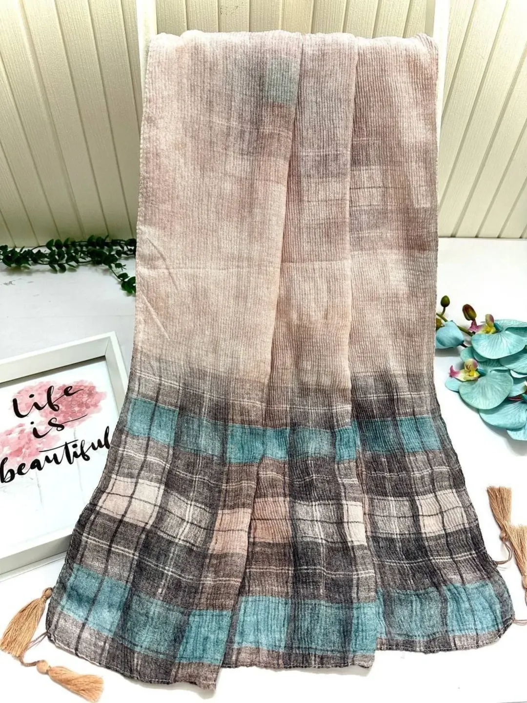 شال پیلیسه طرح چهاخونه طیف رنگی