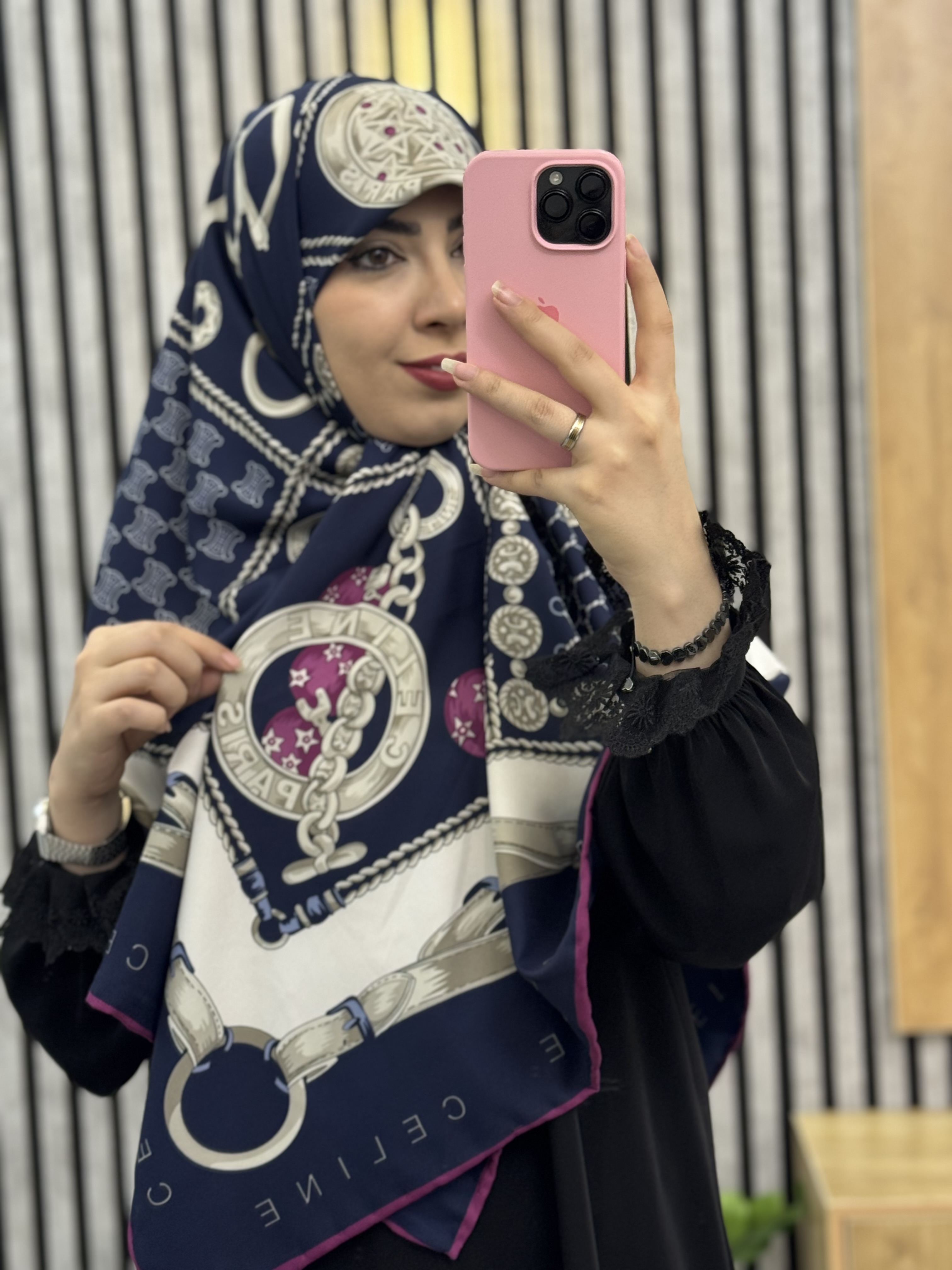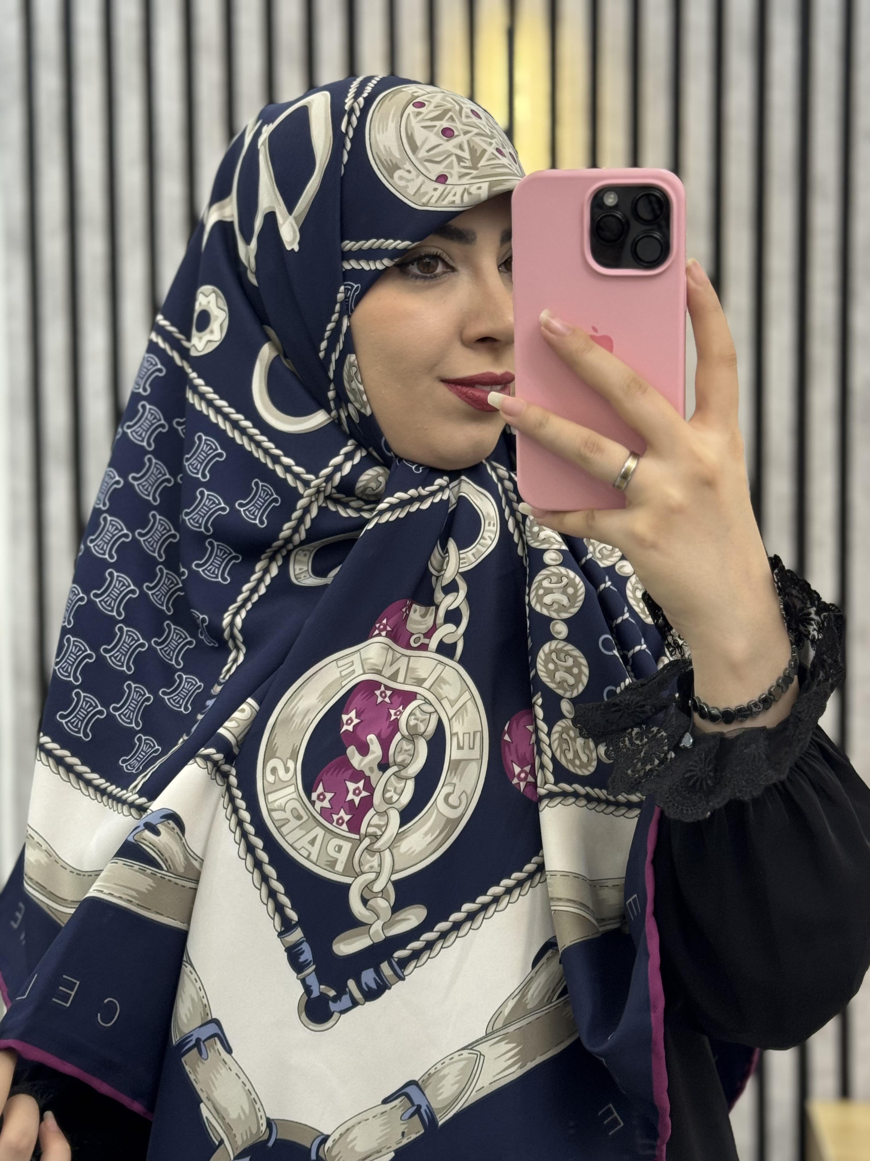روسری ابریشم توییل قواره۱۴۰ رنگ سرمه ای کالکشن عیدانه
