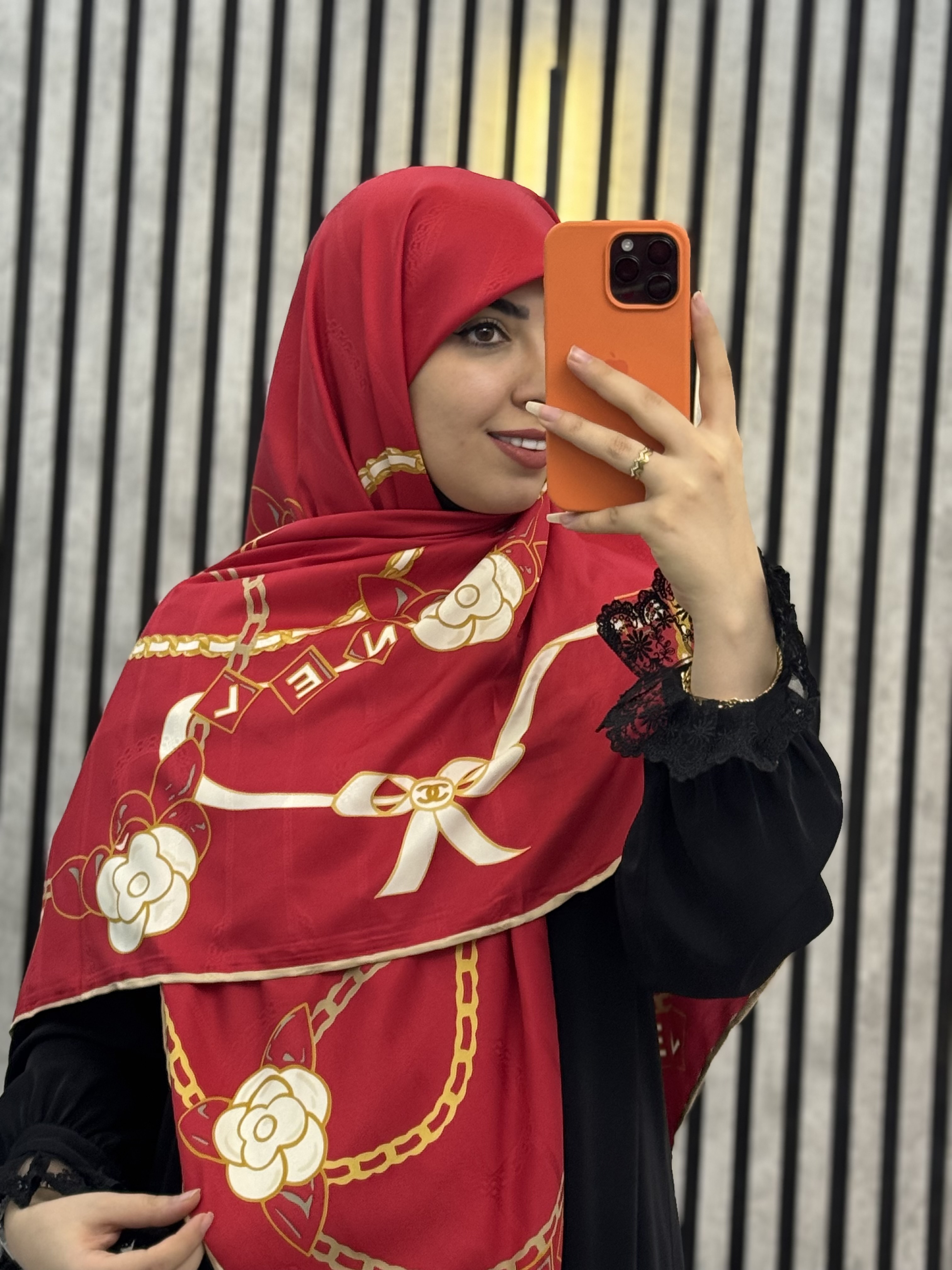 دستهبندی: روسری ابریشم ژاکارد رنگ قرمز قواره۱۴۰