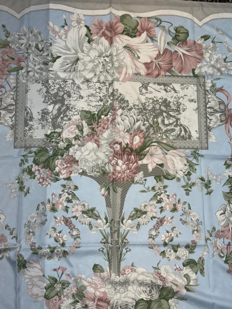 روسری ابریشم ژاکارددور دست دوز وارداتی طرح گل رنگ مشکی با گل های کرم طلایی