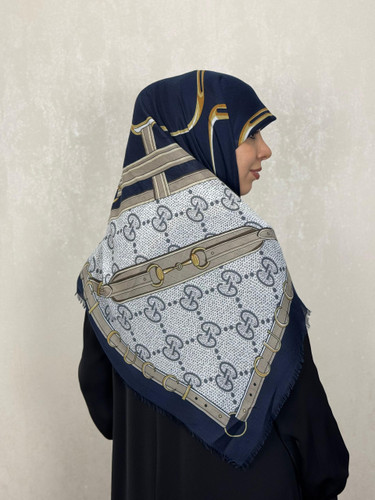 روسری لمه گوچی وارداتی دوریش و شاینی رنگ سورمه ای