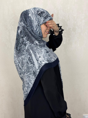 روسری نخی یونیک وارداتی رنگ سورمه ای طرح 004