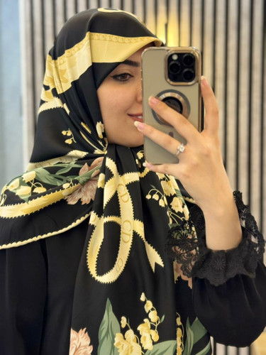 روسری ابریشم توییل وارداتی CD رنگ مشکی کد 002