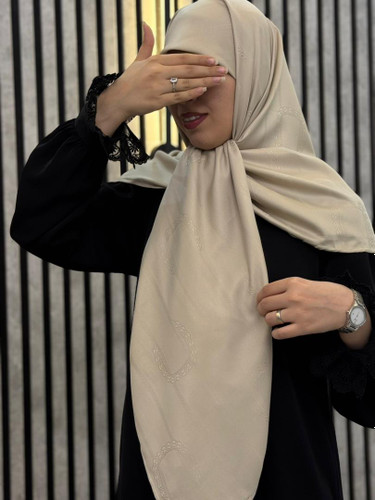 روسری وال اسلپ شاینی جواهر دوزی رنگ بژ